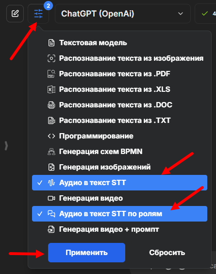 В сервисе VisGPT выставляем фильтр нейросетей для работы с аудио.