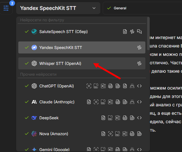 Третьей будет нейросеть для распознавания речи Whisper от OpenAi: