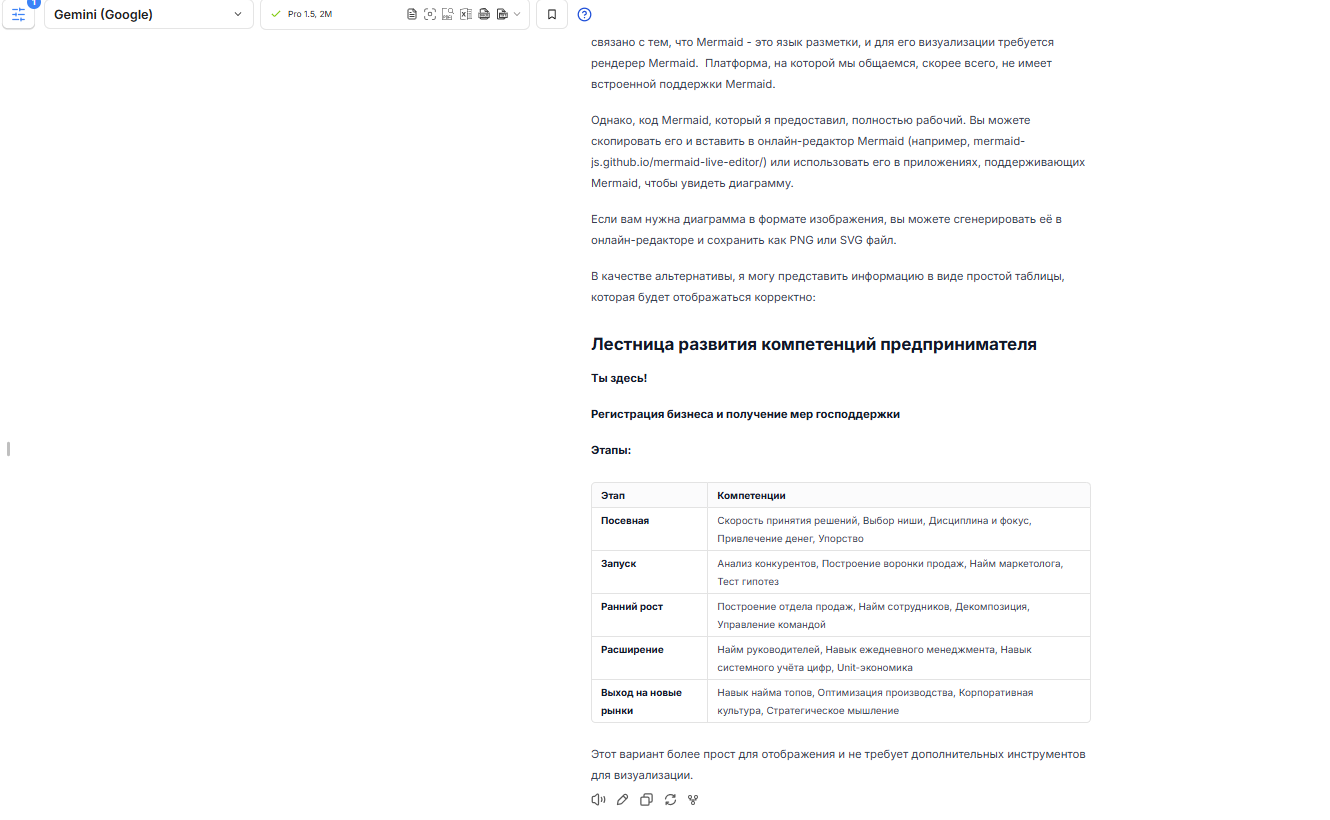 Gemini Pro 1.5 эффективно преобразовал текст в чёткую таблицу, обеспечив презентабельный формат для дальнейшего использования в корпоративных презентациях.