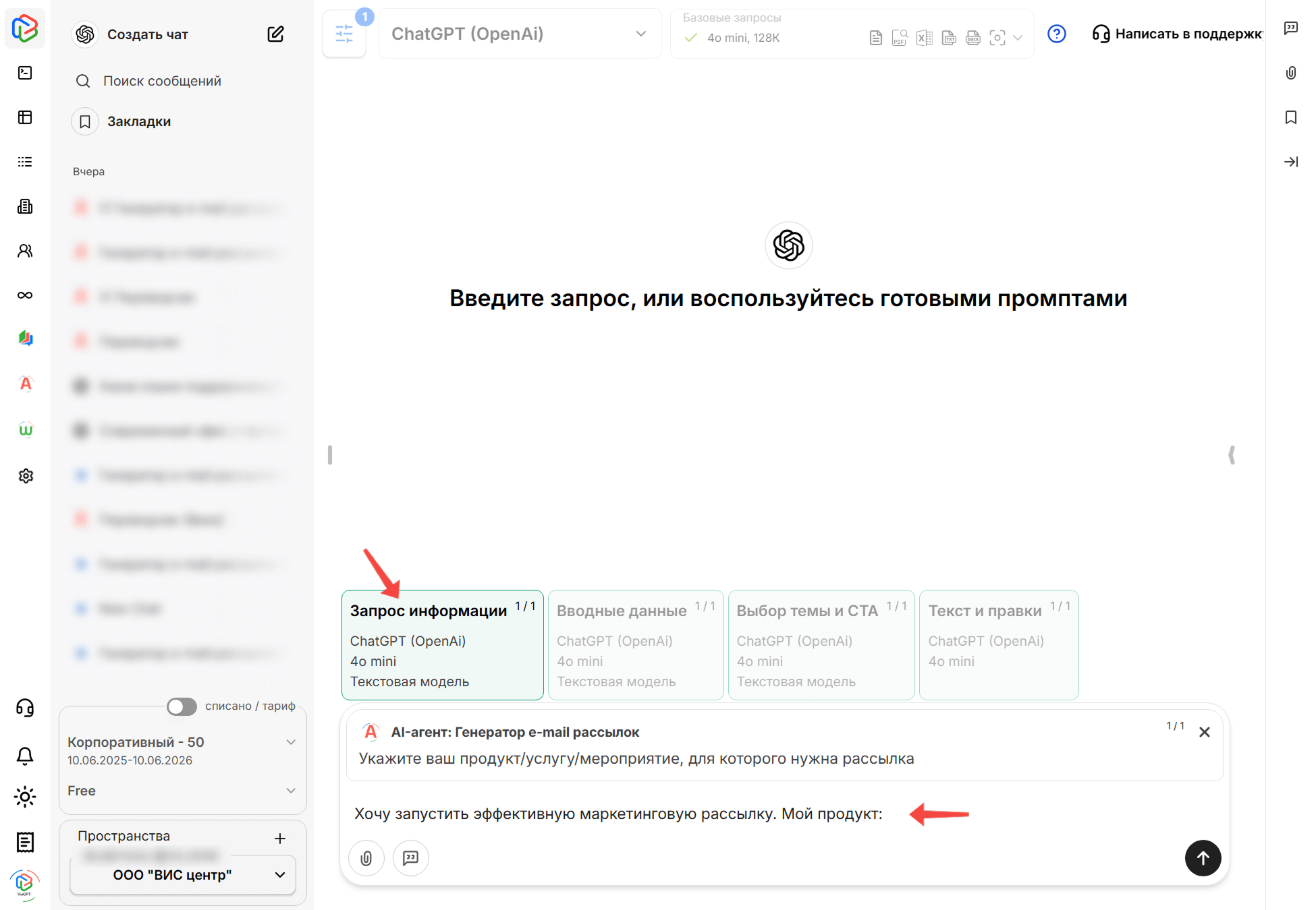 Чем подробнее вы опишете роль нейросети и требования к результату, тем качественнее будет работа агента. Указывайте формат вывода, стиль, структуру.